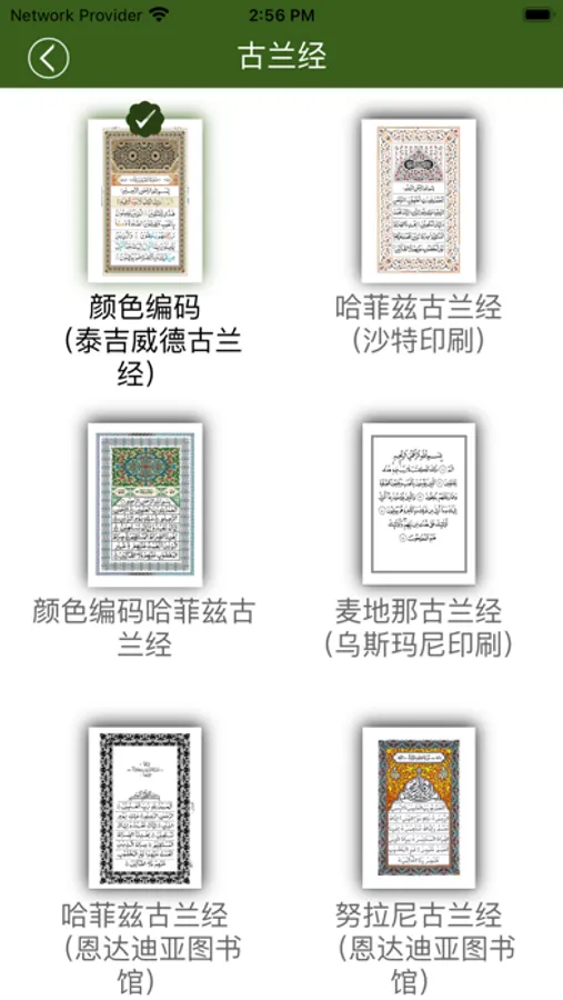 - 6 种广泛使用的高质量《古兰经》印刷品 (Hafizi-Quran)。