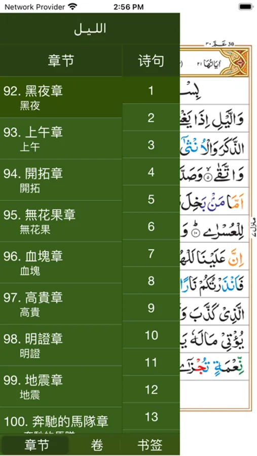 - 逐部分阅读完整的《古兰经》第 114 章和第 30 段。