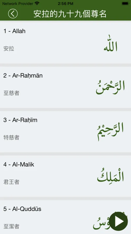 - 阅读阿拉伯语的 99 个真主名字 (Asma Ul Husna) 和您母语的含义。