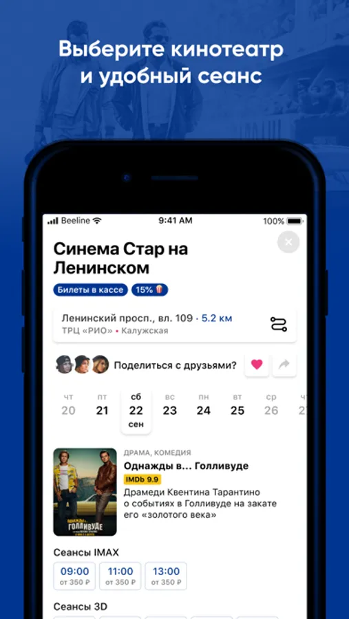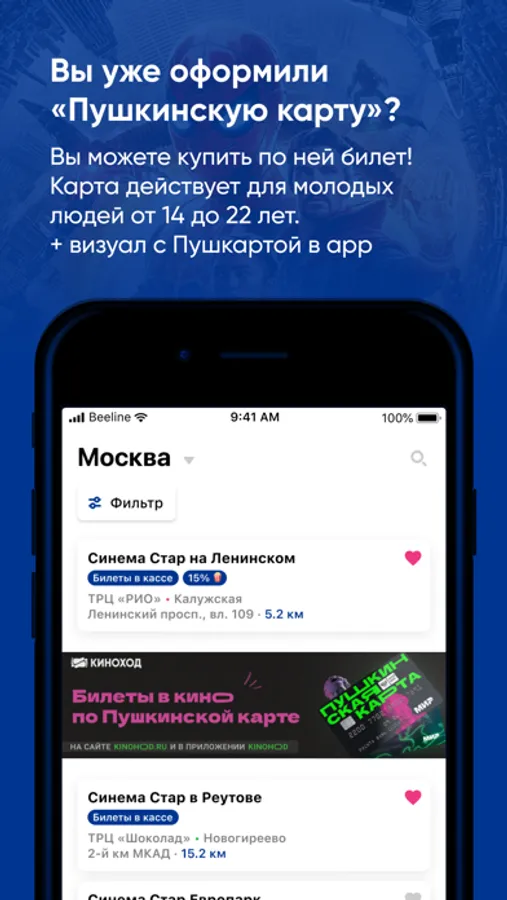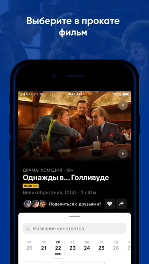 - Выбор ближайшего кинотеатра с учетом вашего местоположения