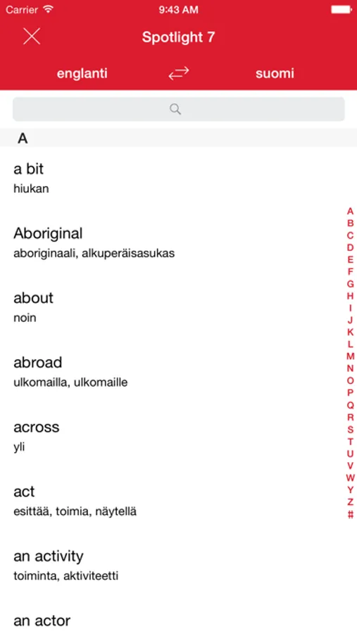 Osassa lukion materiaaleista sovellus korvaa painettujen kirjojen aakkoselliset sanastot.