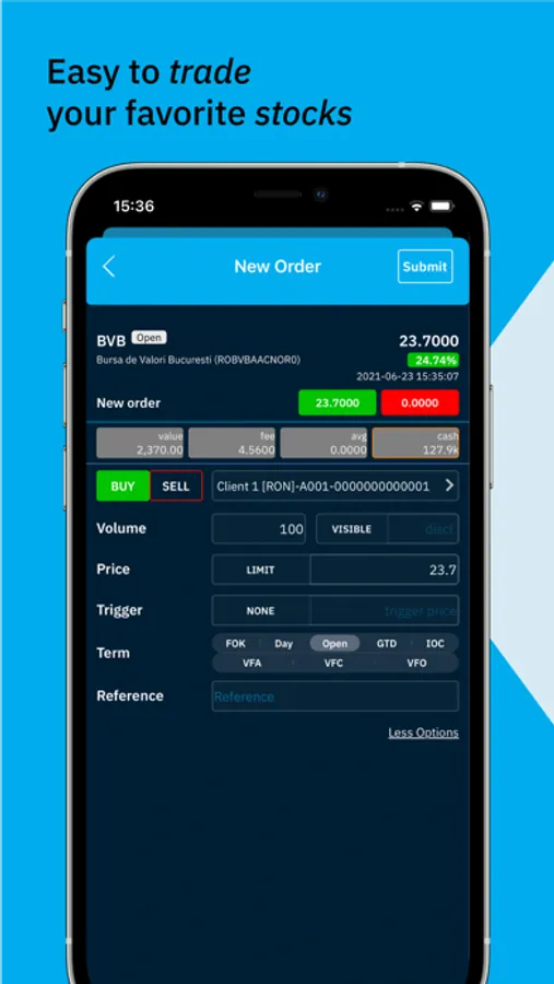 BVB Trading is a mobile trading terminal that provides operational and information support for trading at the Bucharest Stock Exchange. It is part of the Arena XT platform, the brokerage system developed by BVB.