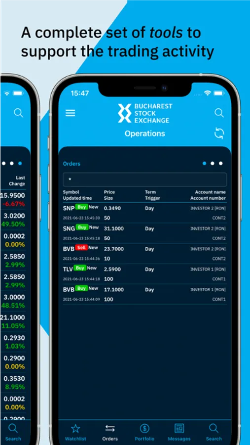 BVB Trading features real-time updates for market data and trading operations, full market depth for any symbol and any market and a complete set of tools to support the trading activity.