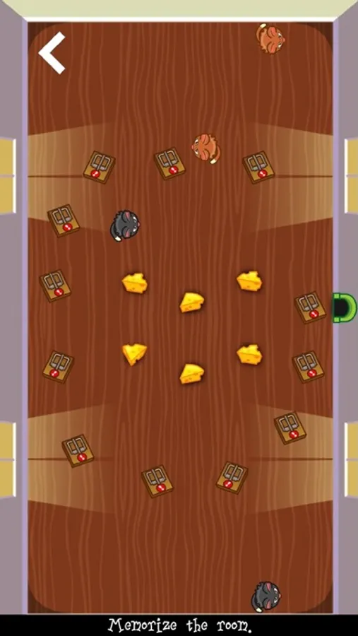Press on the screen until it turns dark and then move your finger across to collect all the cheeses. Afterwards you should go to the mouse hole on the right.