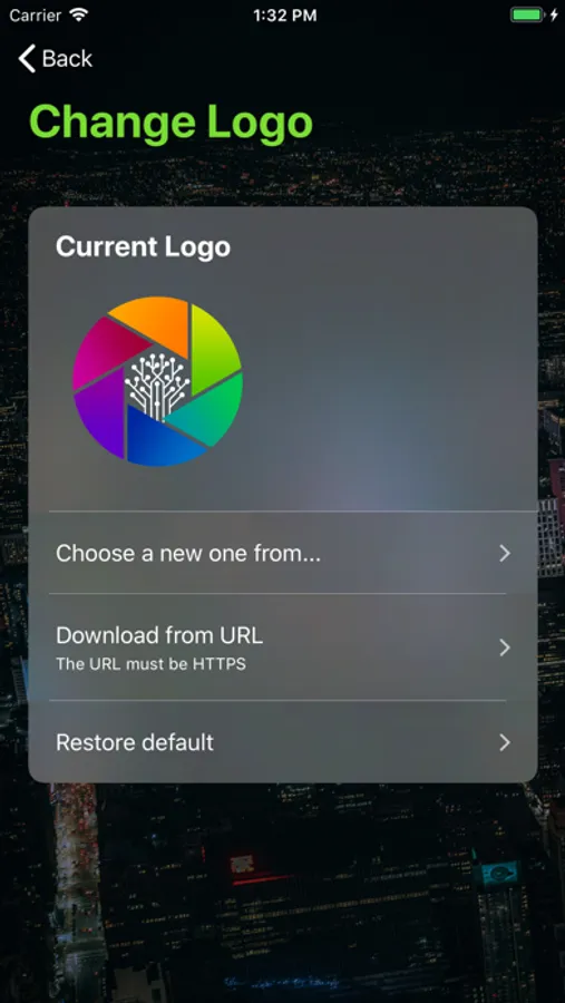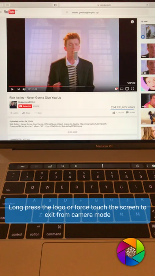 By tapping the logo, the whole camera view will be blurred just in case you would like to "mute the screen". Your logo will shown right in the middle. It is perfect for use cases like a conferences and presentations.