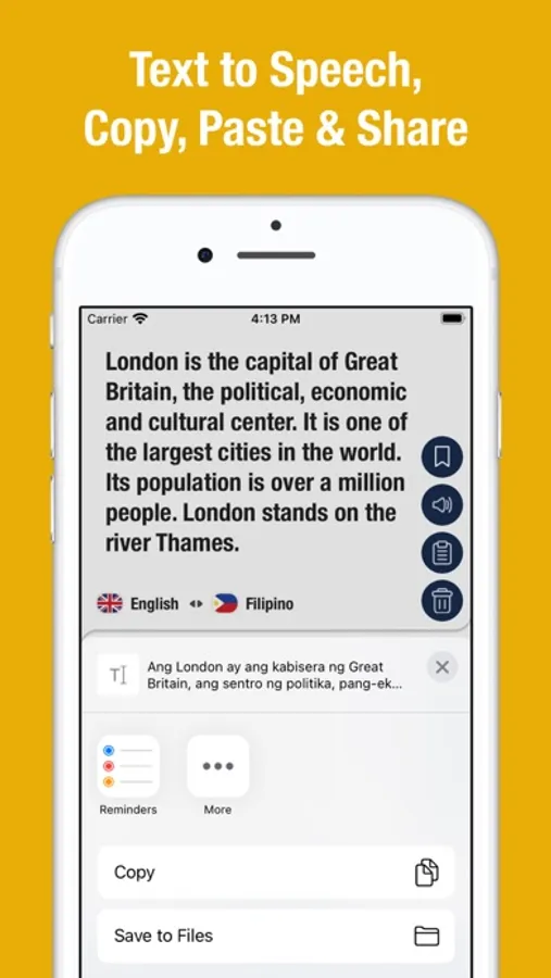 Quality useful application that helps to translate words into English or Filipino with one touch. Perfect for schoolchildren, teachers, students, adults, travellers and for anyone who is interested in studying foreign languages.