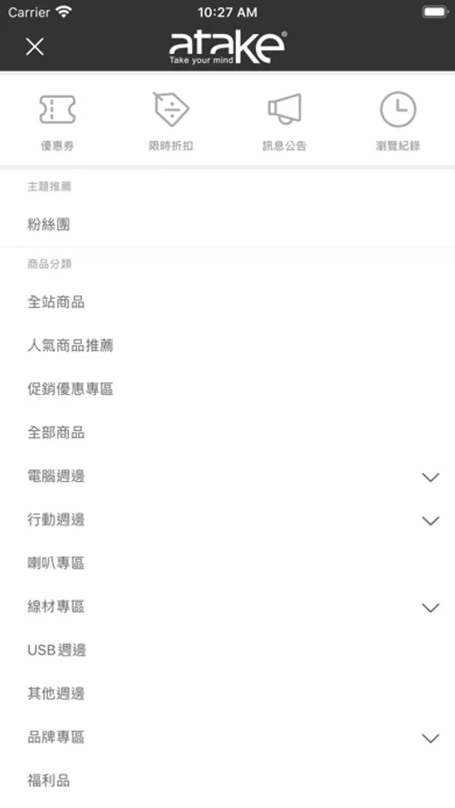 ATake Shop 專屬於您的行動商城,隨時隨地24小時購物不打烊