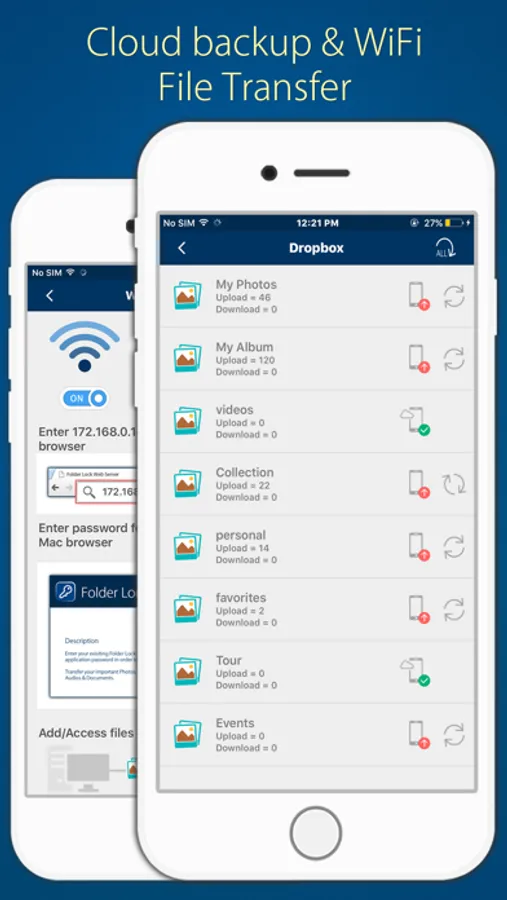 Folder Lock lets you password-protect your personal files, photos, videos, documents, contacts, wallet cards, notes and audio recordings in your iPhone. Folder Lock is your perfect WiFi manager, as you can transfer files from your iPhone to PC, or vice versa, wireless via Folder Lock. Its WiFi Music Manager feature allows you the options of audio import, music import, song import and mp3 import without using iTunes.