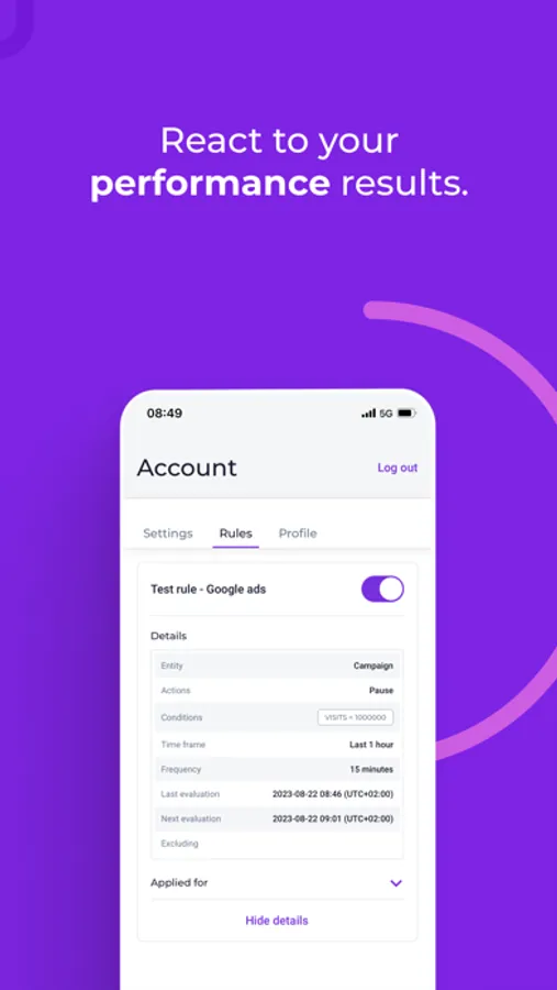 Access the most powerful automation tool on your phone & take action. Manage auto rules, pause/resume campaigns, or change bids within seconds.