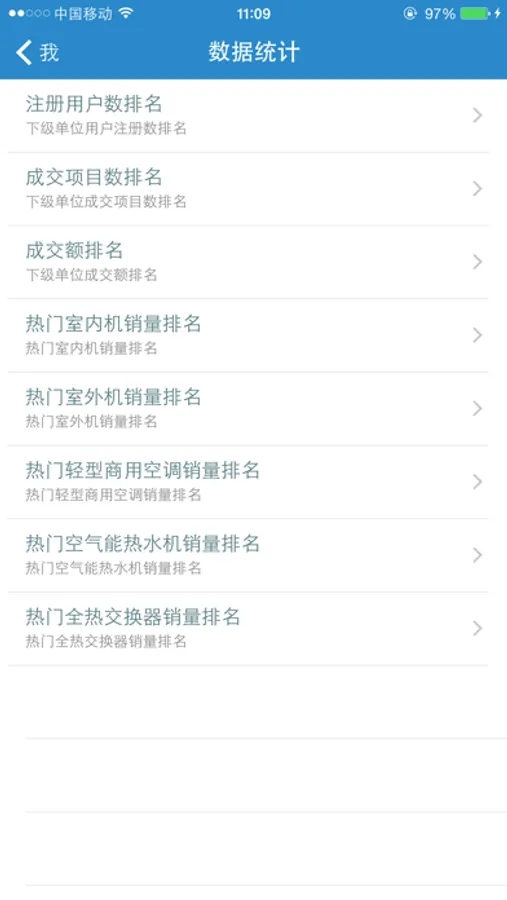 可以按照时间段、销售区域统计各类销售数据并排名,如热门室内机、热门室外机、成交额等。