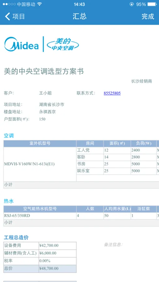 支持多联机、轻型商用空调、全热交换器、空气能热水机选型;支持户型模版,负荷自动估算,设备自动选型,自动套用价格,生成&分享项目报告。