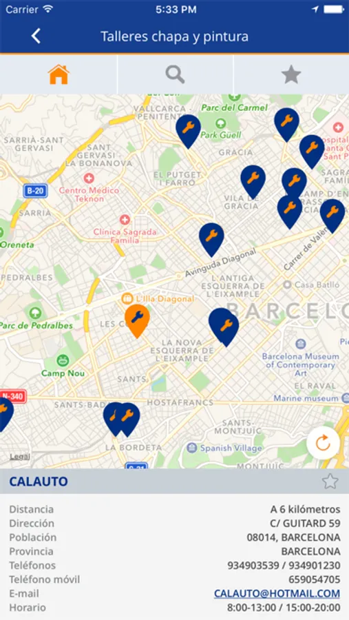 o Acceder al listado de talleres preferentes de MGS de chapa, pintura y lunas. Posibilidad de compartir y guardar tu taller de chapa y pintura más habitual.