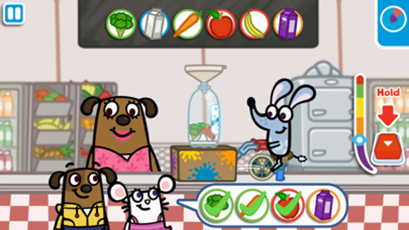 Boj loves to drink yummity-scrummity smoothies, so he's got Boj-ing and built the ultimate Boj-a-blender to make some for all his thirsty buddies! They've all come to Mrs Woof's diner to ask for their favourites and with your help Boj will whizz-squish together every order.