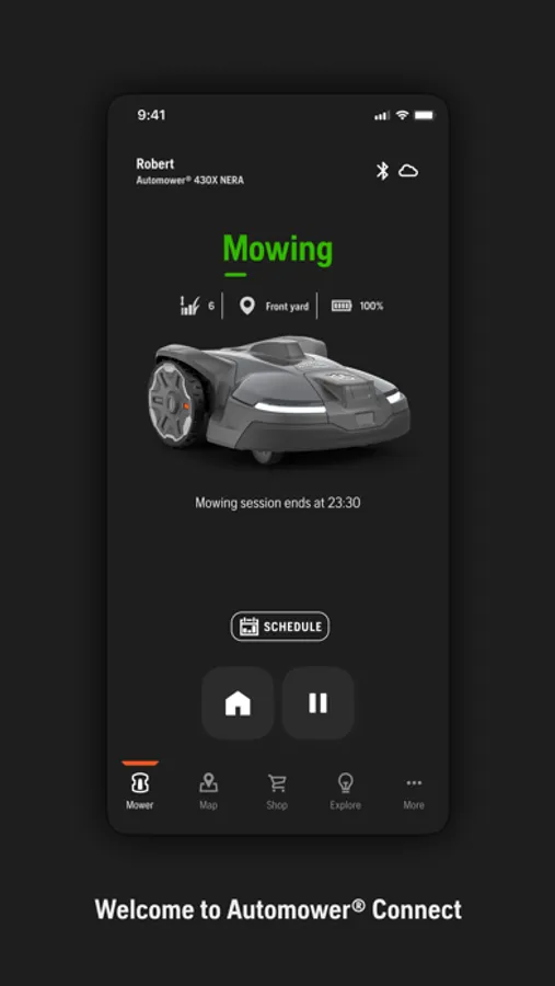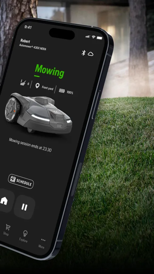 The official Husqvarna Automower® Connect app allows you to take full control of your Husqvarna robotic lawnmower. The app provides two modes of connectivity depending on model; Automower® Connect for long-range connectivity using cellular communication, and Automower® Connect@Home for short-range connectivity using Bluetooth.