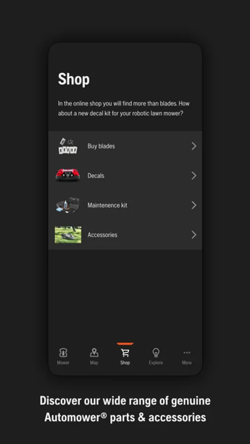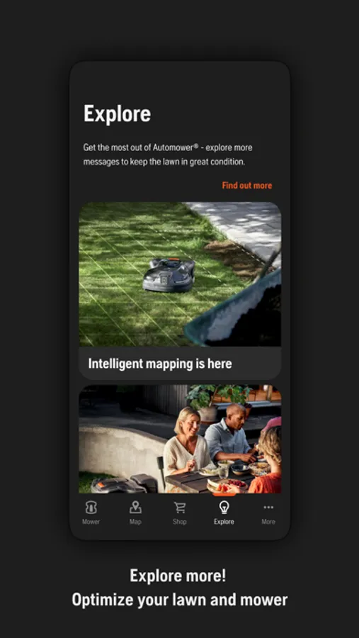 • Take advantage of the high resolution and color display on your mobile device to enhance the interaction with the mower.