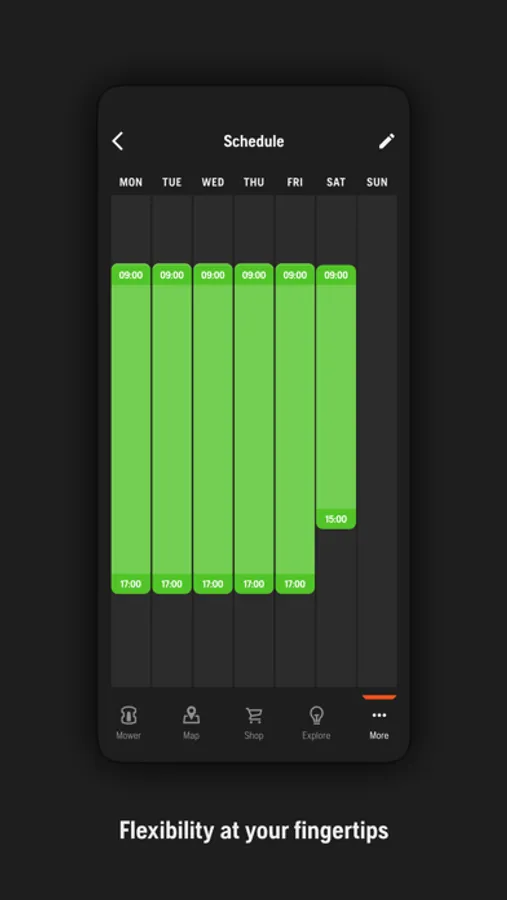 • View and change the mower settings, e.g. timers and cutting height.