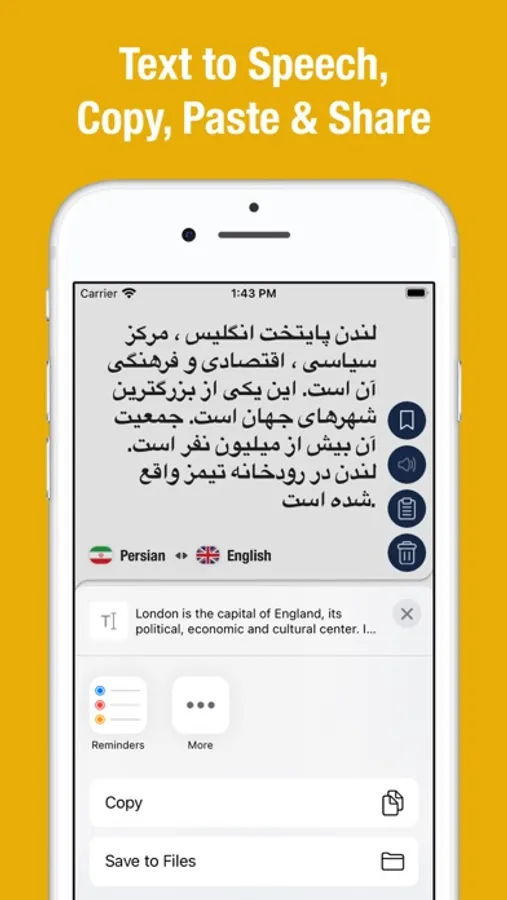 It is a translation tool that helps you break down language barriers. Excellent app for all who makes the first steps in learning Persian. Intuitive interface, easy navigation, quick result. Begin conversations confidently!