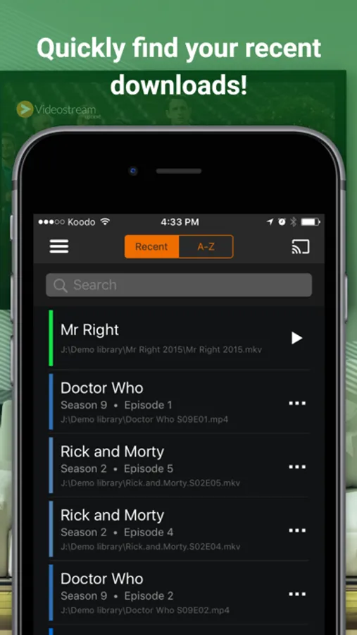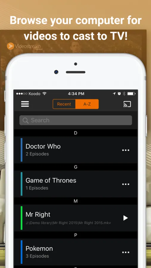 Videostream lets you stream local videos (downloads, etc.) from your computer to your Chromecast or Android TV in full HD! This iPhone/iPad app will remote control Videostream, which is an easy-to-use Chrome app (Get it for free at www.getVideostream.com). Enjoy your videos on the big screen!