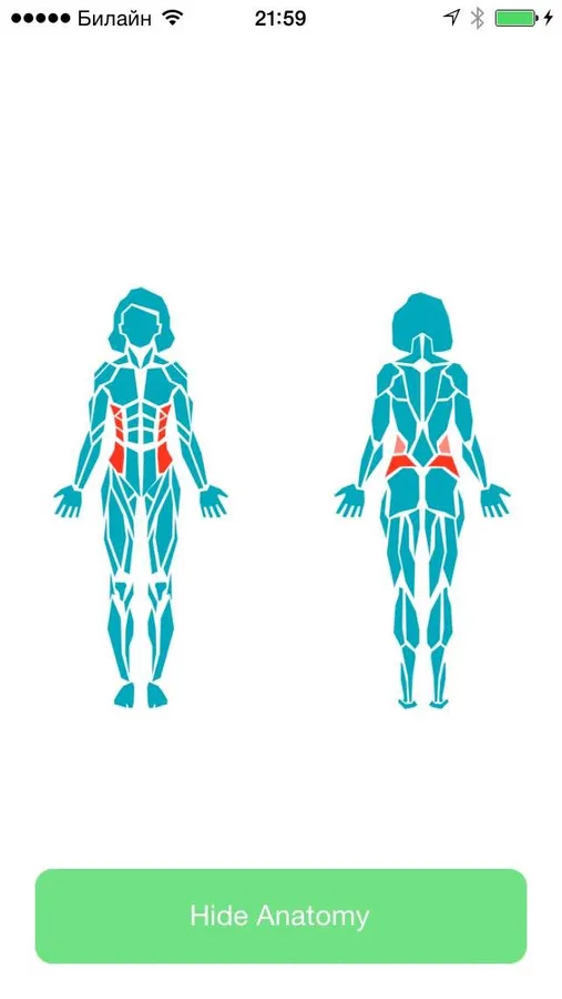 For the convenience of use and information perception, each exercise has a description of the technique and quality animation of the process.