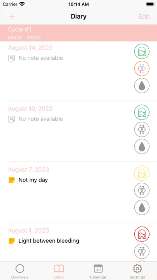 - Chronological record of your cycles with comprehensive information