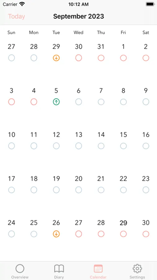 - Clear calendar with color-coded markers for ring events