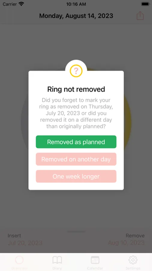 Welcome to MyRing, the innovative app that makes managing your contraceptive ring easier than ever. With a user-friendly interface and comprehensive features, you'll never forget to insert or remove your contraceptive ring again.
