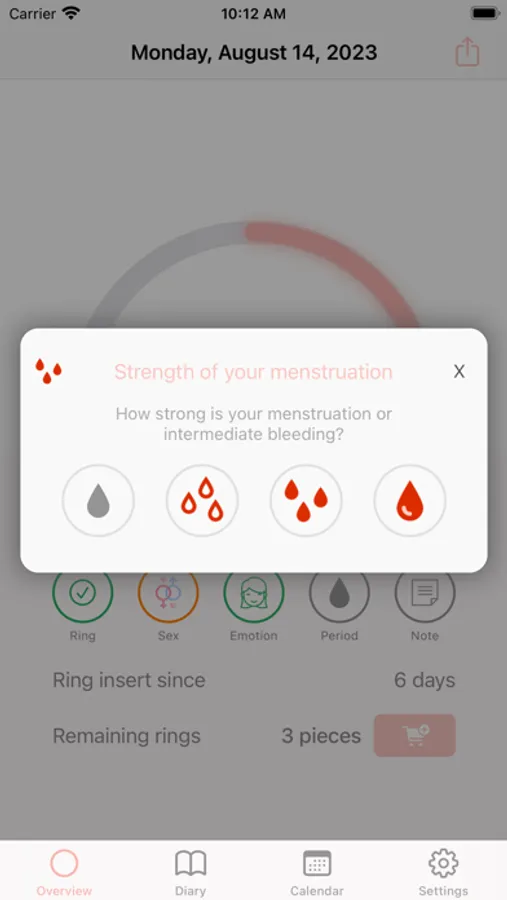 Our app reliably reminds you of the crucial moments for inserting and removing your contraceptive ring, so you always stay on track. You can keep track of your menstrual cycle at all times and record personal notes, your well-being and the strength of your menstruation for each day.