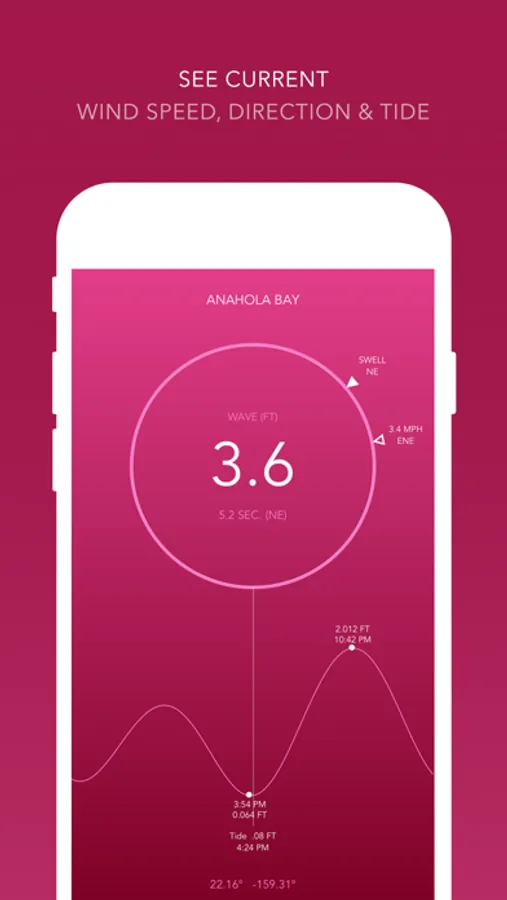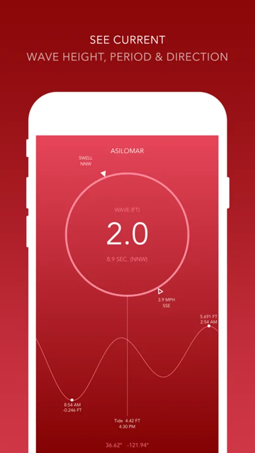 Quickly access unbiased real-time conditions from NOAA buoys including: air & water temperature, wave height, period, & direction, wind speed & direction, and tide graphs. Choose the spot with the conditions right for you without having to sift through data-heavy websites.