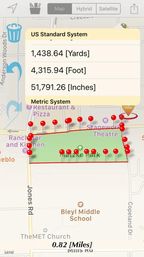 Geo Measure It lets you calculate geographical areas and distances on your iPhone/iPad. It is a simple tool that allows you to draw one or more lines on the map and measure its distance. For example, you can measure the mileage between two cities. Also, this tool can be used to measure the enclosed area of a draw shape/polyline on the map. Quickly and easily outline a property on the map and find its area, for instance. Both the English (the United States customary) System of measurement and Metric System are available.