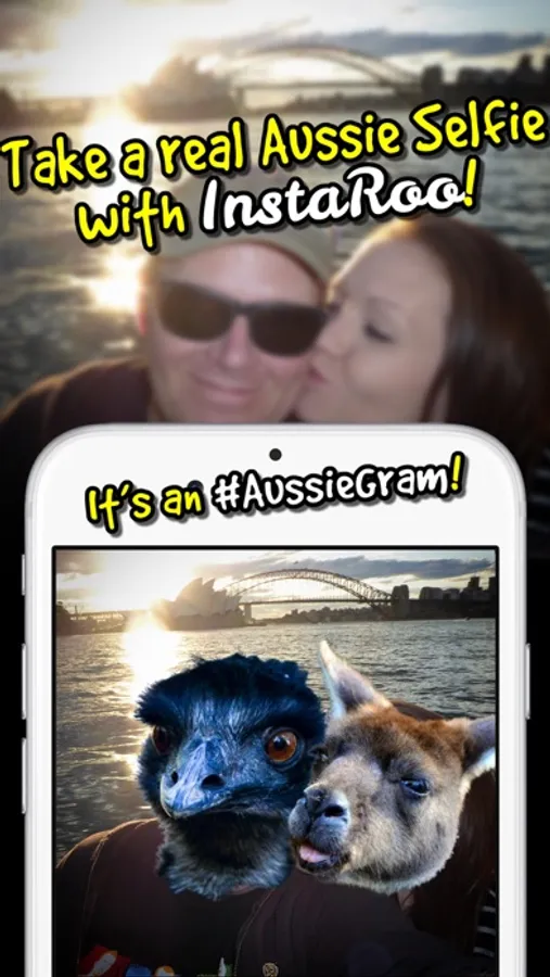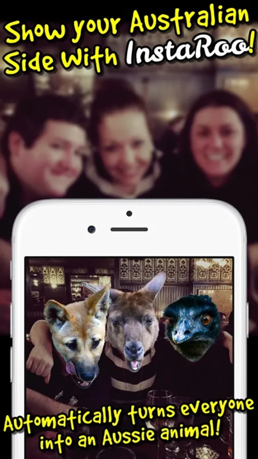 InstaRoo is here to solve all your not-enough-aussie-wildlife-in-my-photos problems! Using our amazing Auto-Roo-ification technology, InstaRoo detects faces on your camera or in your photos and mutates them into Aussie beasts! Look around the room and see everyone turn into a Kangaroo, a Dingo, an Emu and more! Then create an #AussieGram and share it with the world!