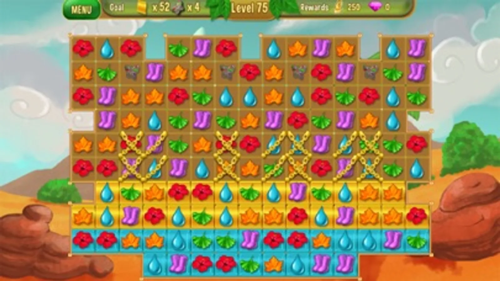 - Complete 130+ challenging match 3 levels