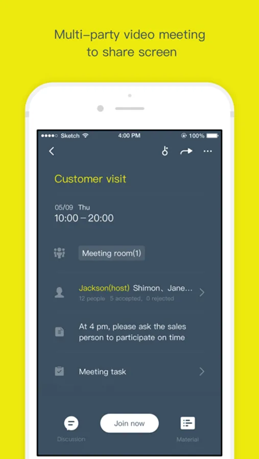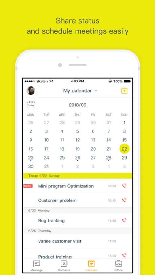 • Schedule management: users can check the contact status, and quickly schedule the meeting. When meetings are about to start, all participants will receive a notification and click to one-key join the meeting.
