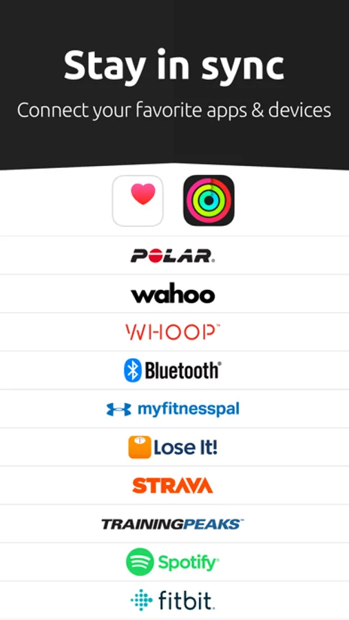 After working out, you can see your intensity in clear graphs and export your activities automatically to Apple Health and other fitness apps to keep all your data in sync.