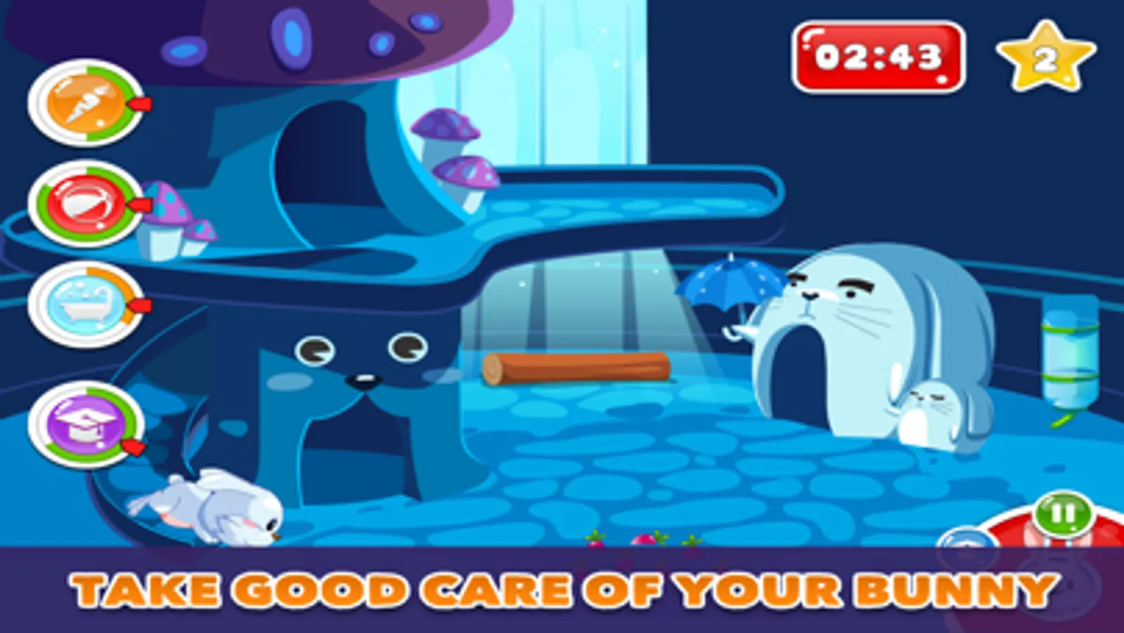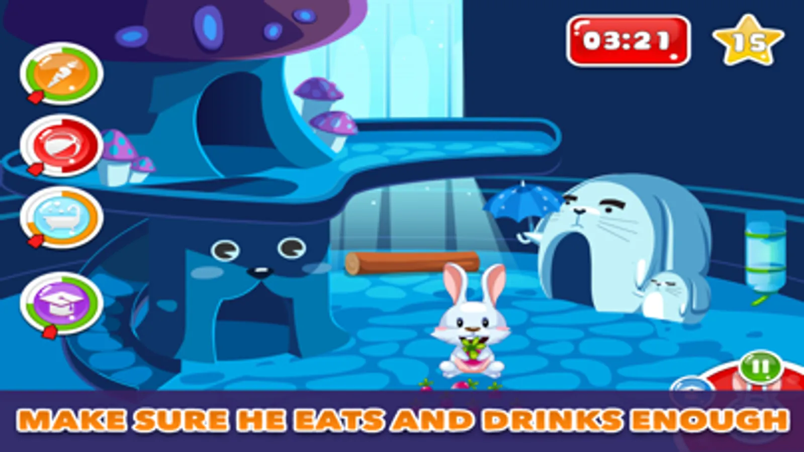 In this game, there are bunnies waiting to be taken care of. They have a gorgeous dwelling, with a bathroom and bedrooms. Make sure you feed them and give them water. See on the gauges how the bunnies are doing, they all have to be green. When you do everything right, you can go to the next level.