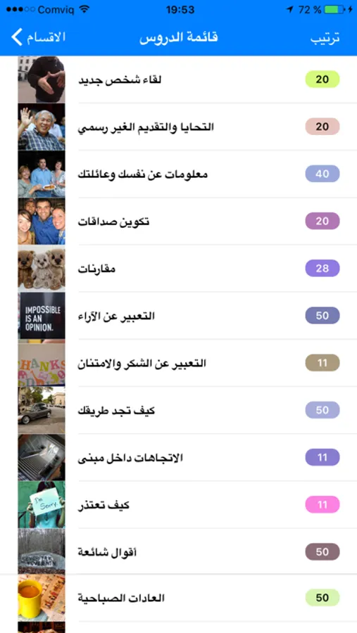 - رتب الدروس بنفسك وحسب اهميتها بالنسبة لك