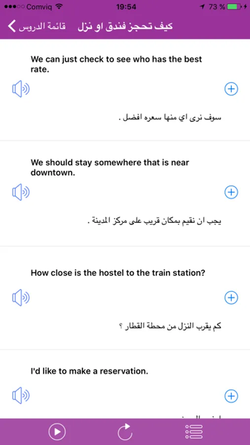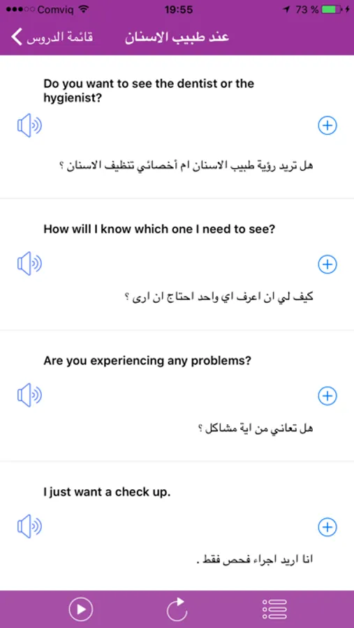 - جميع الجمل والعبارات الانجليزية مدعومة بالنطق الصحيح من قبل شخص حقيقي لغته الام هي الانجليزية مع الترجمة للعربية