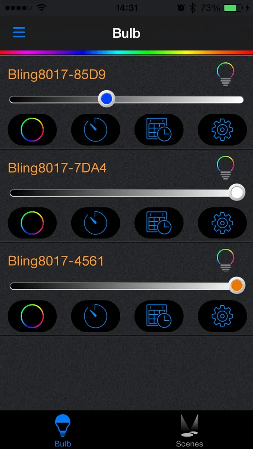 The BLING LIGHT App will add colour to your life. All BLING smart bulbs may be controlled from a mobile device, using Bluetooth. Therefore, you can change several functions, such as colour and brightness, incoming calls/text messages alert, proximity control, automatic power off. The bulb can even change colour according to the rhythm of your favourite music! Compatible with iPhone 4s/5, iPad3, iPad Air, iPad mini, iPod touch 5, Samsung S5, Nexus5, HTC and other. Needs iOS 7.0/ Android 4.3 or later.