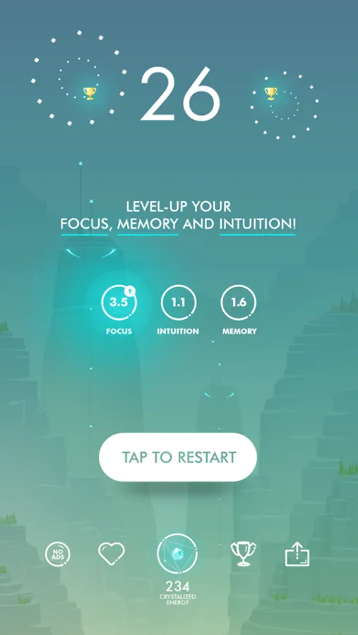 Level up your own Focus, Memory and Intuition while achieving new high-scores in the game.