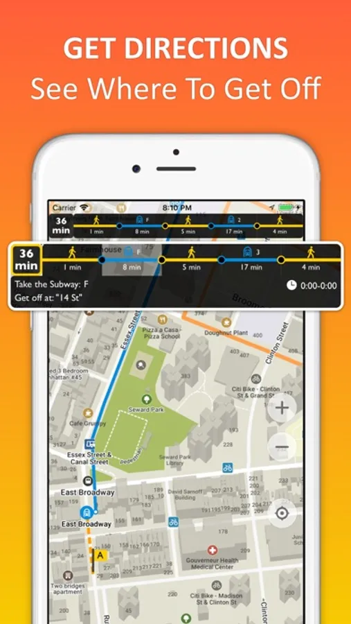 • Use the New York City Offline Map Route planner to plan your journey by bus, subway, ferries or railway to get from one place to another within New York, quickly and cheaply.