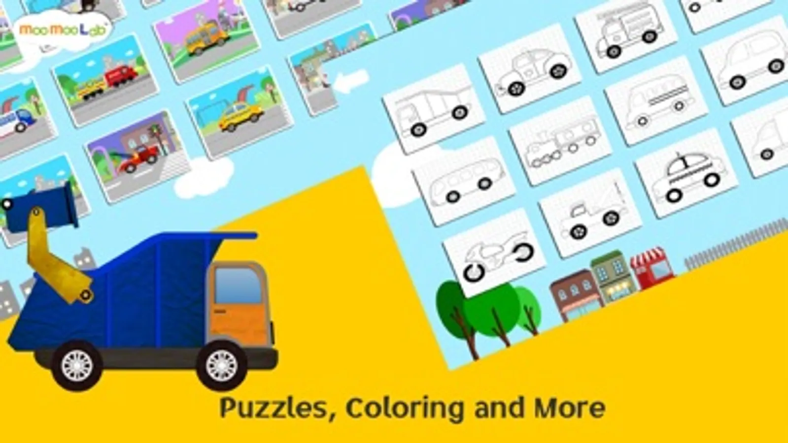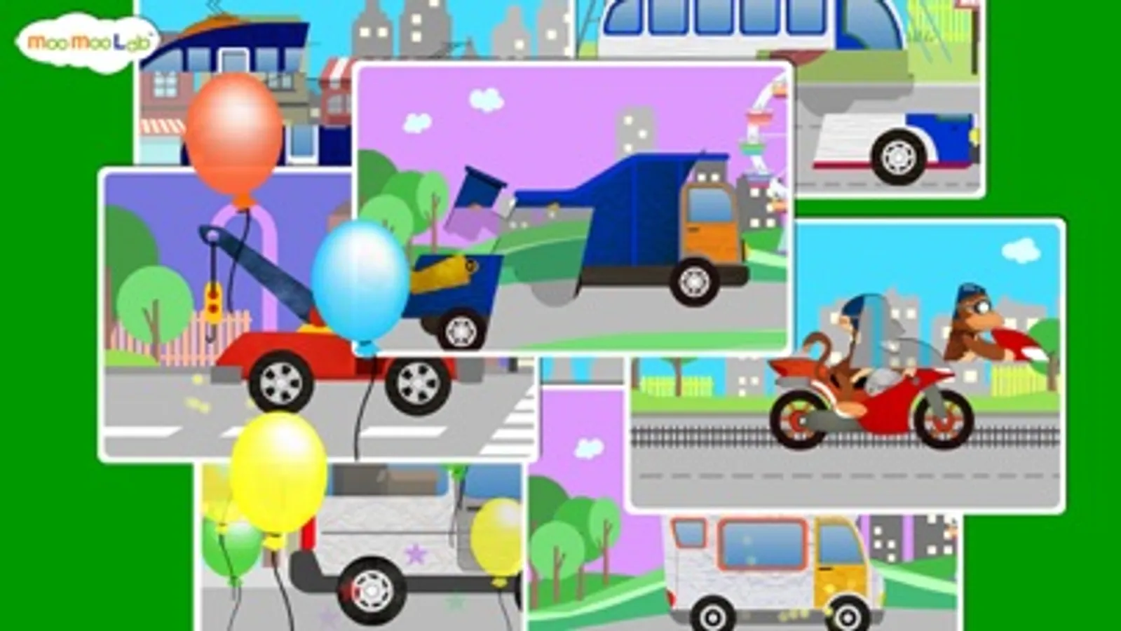 * Cars and trucks with unique and funny animations and sounds for age 2.0+