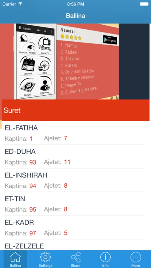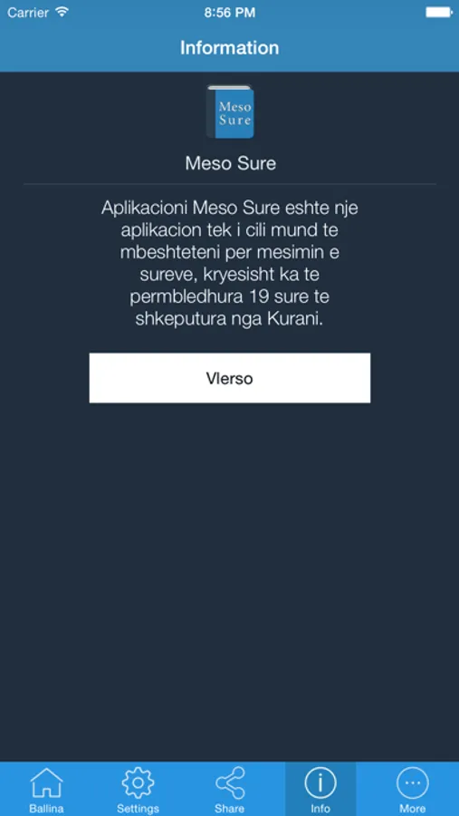 Aplikacioni Meso Sure eshte nje aplikacion tek i cili mund te mbeshteteni per mesimin e sureve, kryesisht ka te permbledhura 19 sure te shkeputura nga Kurani.