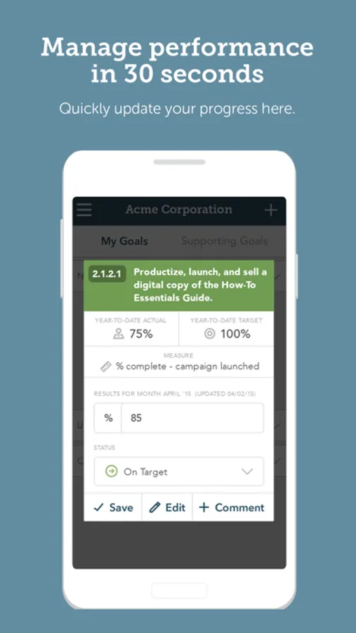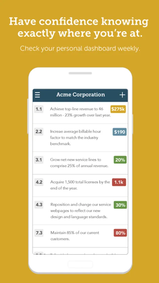 OnStrategy Mobile provides simple, streamlined progress reporting so you can manage your performance in a matter of seconds.