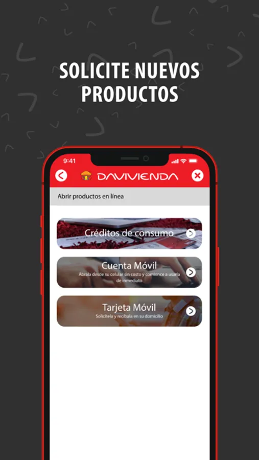 → Solicite más productos en línea: Ahora podrá solicitar cuenta de ahorro, crédito y tarjetas de crédito de forma digital.