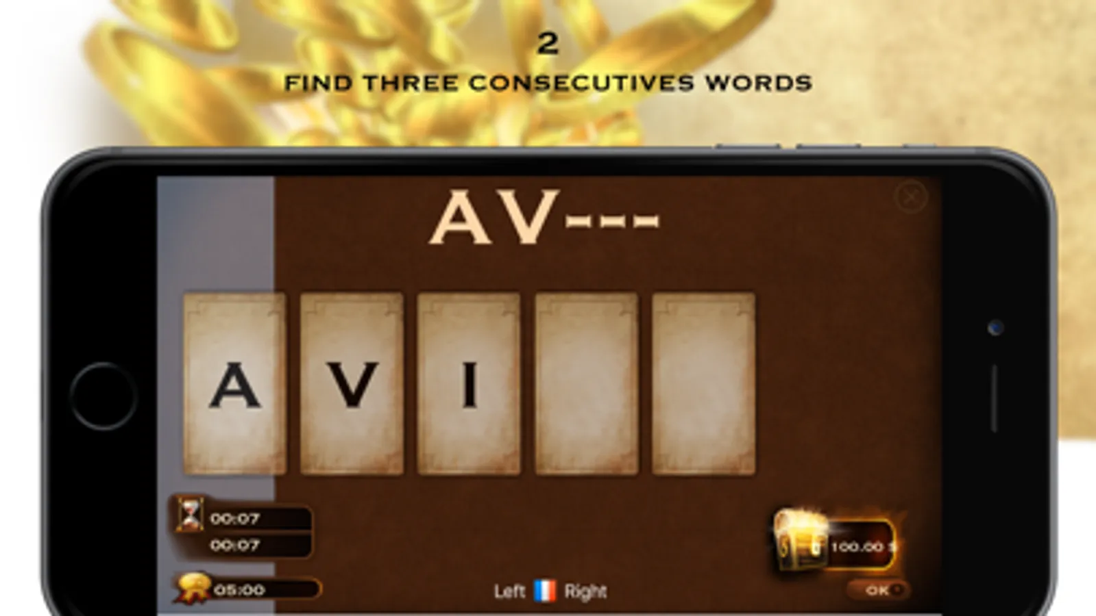 Find quickly a serie of three consecutives words from letters clues to be the best.
