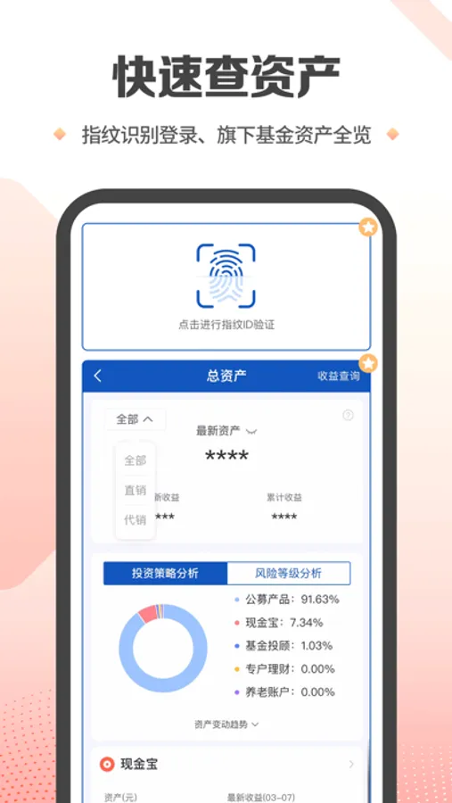【快速查资产】指纹识别登录、旗下基金资产全览