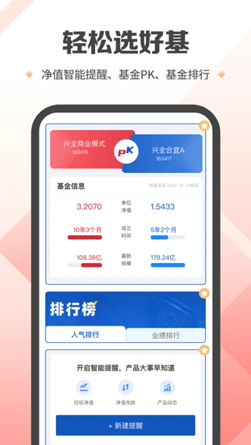 【轻松选好基】净值智能提醒、基金PK、基金排行