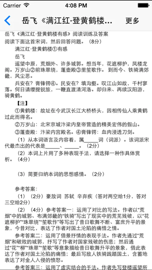52·岳飞《满江红·登黄鹤楼有感》阅读训练及答案