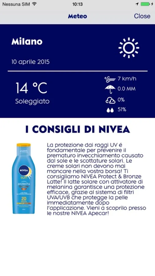 NIVEA Milano is the app thought by NIVEA for you and all visitors of Expo Milan 2015, to give you a new point of view of the city of Milan, letting you see its most authentic soul.