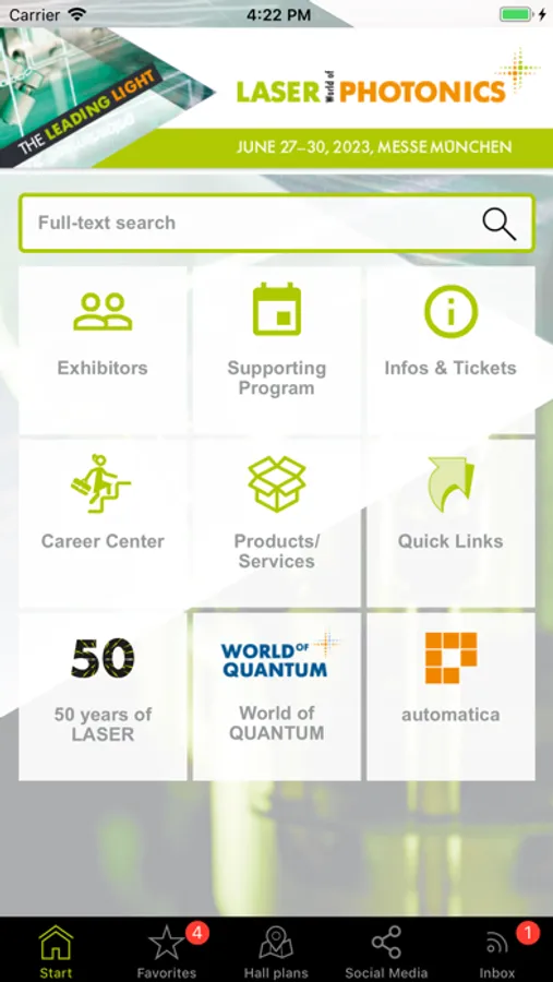 Do you ever wish your trade fair visit would just organize itself? With the LASER World of PHOTONICS app 2023 it will seem like it does. Whether you want to take a quick look at the program, search the exhibitor, product lists and application areas or general information, the app offers a whole host of useful features to help you plan your trade show visit.