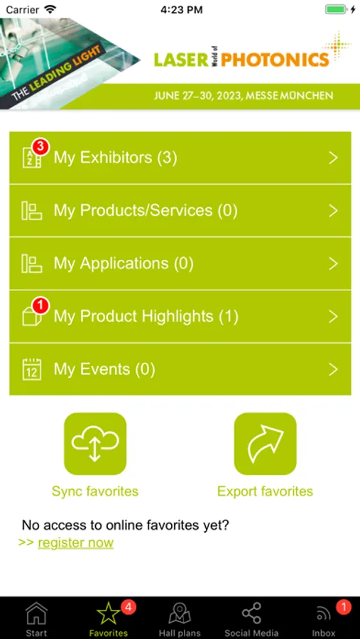 • Multisync of favorites lists – data synchronisation between your favorites in the exhibitor portal and the app